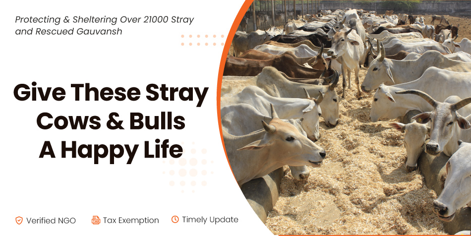 Once a cow grows old and stop giving milk, their owner disowns them because they are of no use to them. Thousands of such innocent cows are left on the street without a home. Many of these are just aged, injured, or abandoned. Some of these cows fall prey in the hands of butchers. Others are deeply starved and move from one place to another in search of food bearing the brunt of weather. These cows are insulted, canned and even pelted with stones. Some of these even meet with fatal accidents, others groan in pain due to severe injuries waiting for medical attention. The life of these cows become miserable. Collaborate with Krishnayangauraksha to supply essential fodder, medication and more for the well-being of cows and bulls and be a part of making a meaningful difference in their lives.